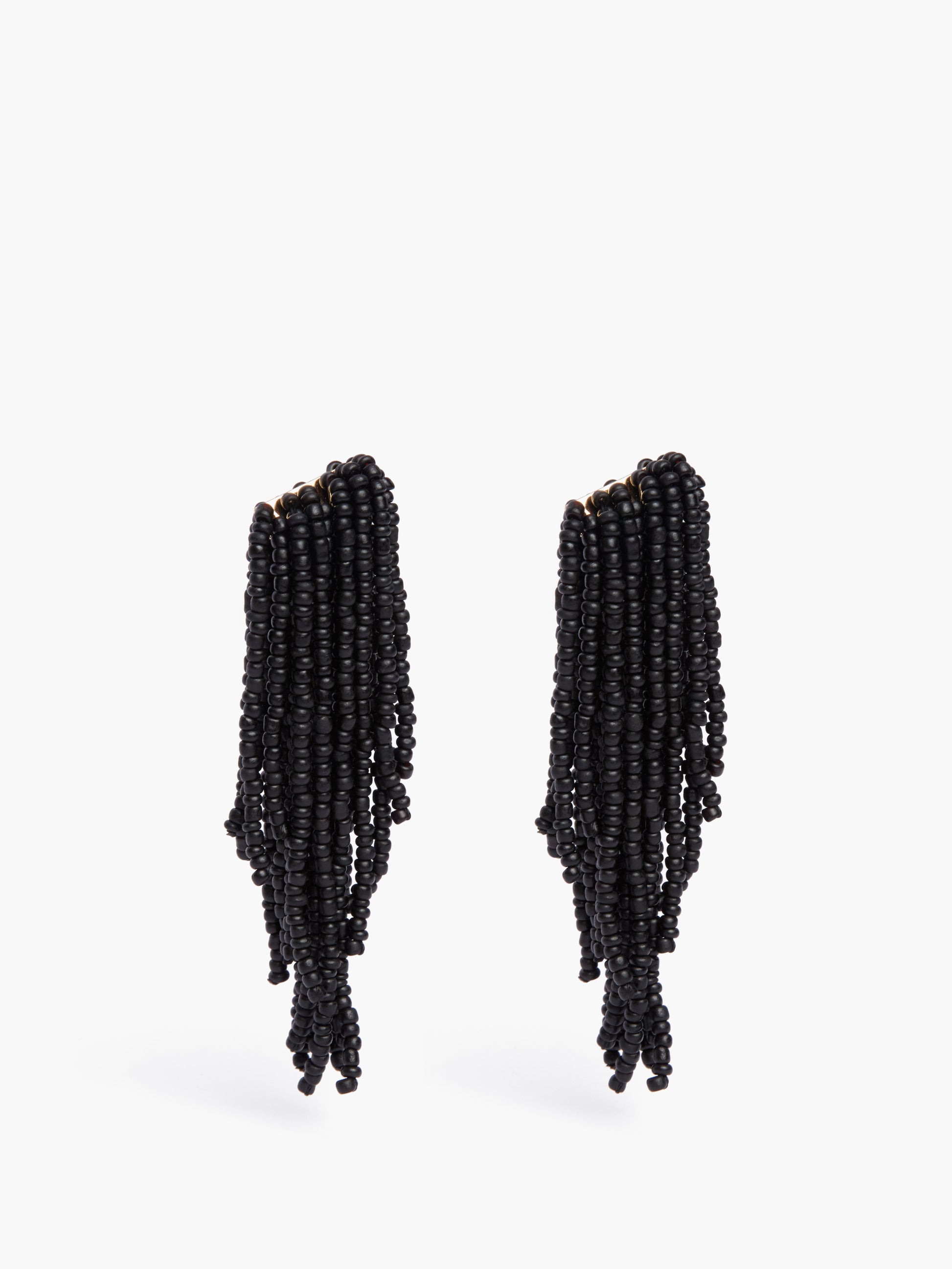 Delicately crafted with matte black Miyuki seed beads, our Black Waterfall Earrings cascade gracefully, catching the light with every movement. The intricate design adds a subtle yet striking statement, making them the perfect accessory for both casual and formal occasions.