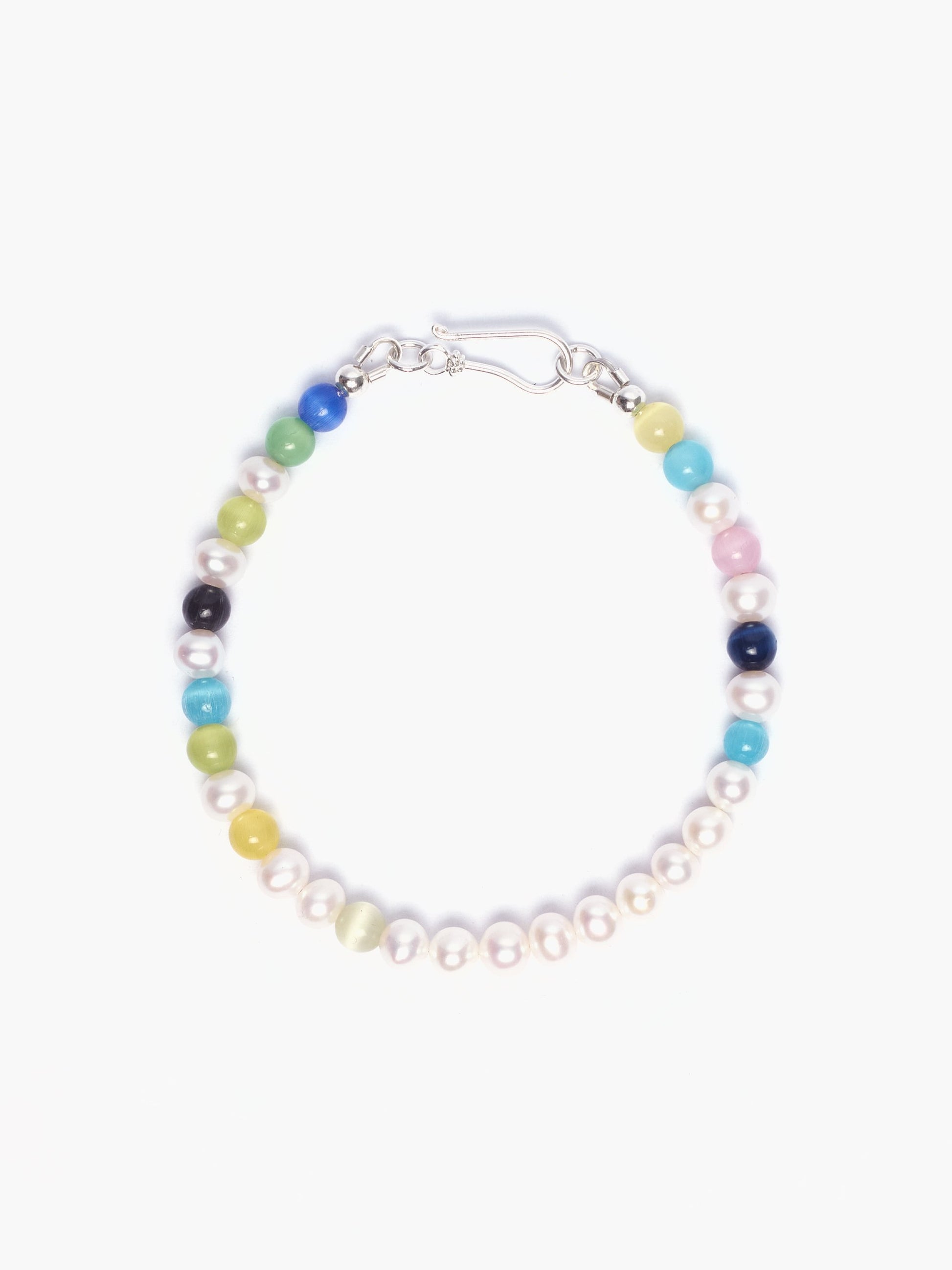 Multicoloured Agate Beads x Freshwater Pearl Bracelet